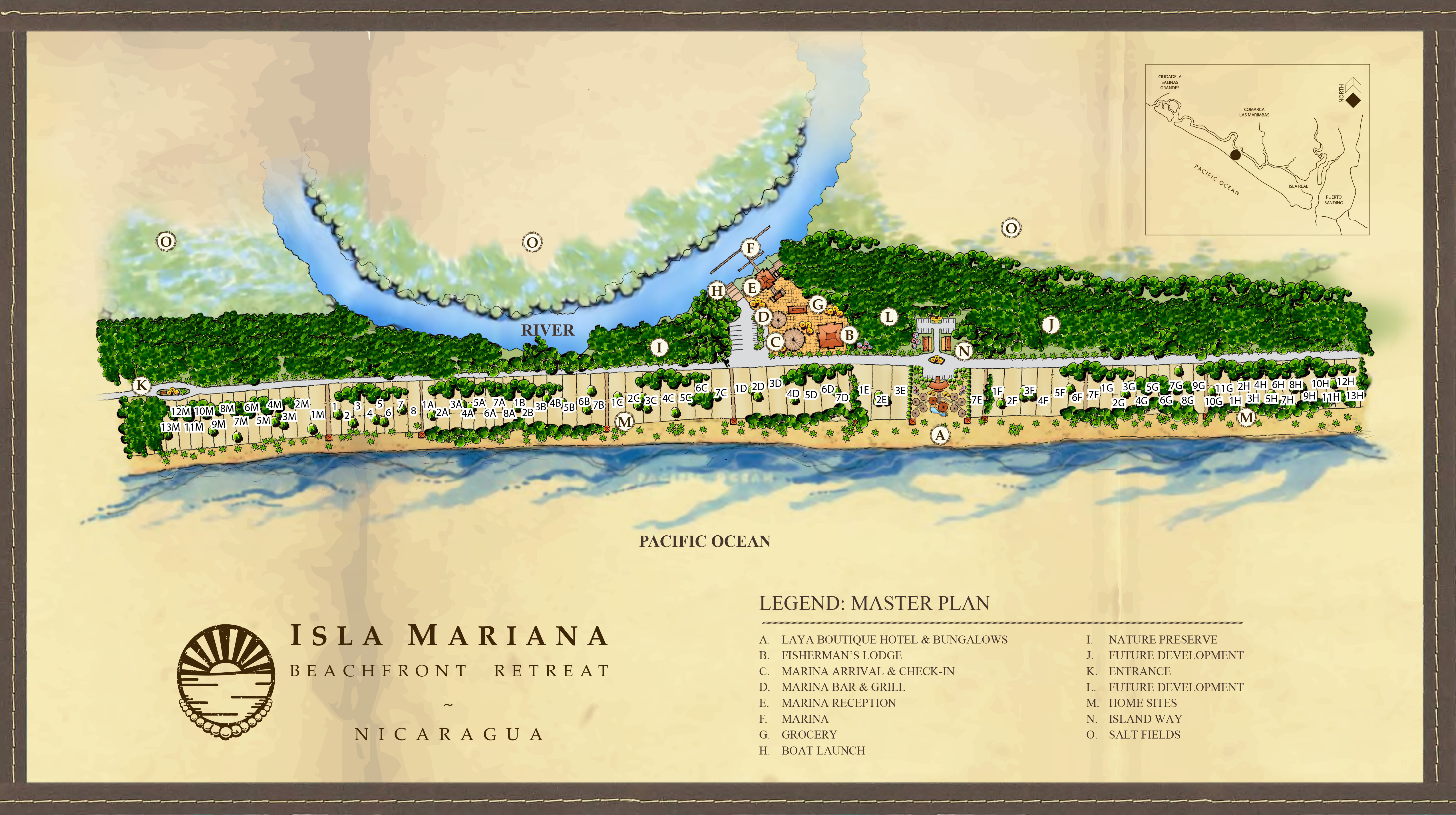 Isla Mariana on Nicaragua’s blossoming Pacific Coast continues to gain interest from global investors. The lands are freehold title stretching 1.5 kilometers of beach frontage on the Pacific Coast of Nicaragua, 89 kilometers northwest of the capital city of Managua. Our pristine and previously undiscovered island garnered instant attention when it became known to the public. Investors clamored to get in and 50+ home sites were snapped up. Isla Mariana has an impressive array of features, which attracts buyers from around the globe. Owners are drawn to our miles of sandy shore, gently sloping beach with safe swimming, pristine river with plans for a recreational marina, which is a rarity in the region, and the privacy, security and exclusivity offered by its island location.
